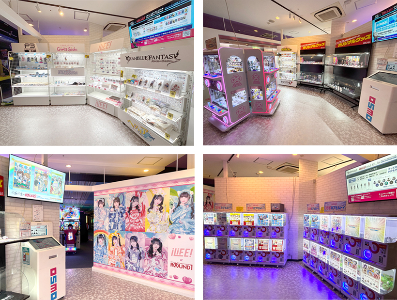 ラウンドワンコラボ描き下ろしイラストを使用したアクリルスタンドやキーホルダー等、今ラウンドワンでしか買えないコラボグッズを多數販売中! コラボ限定カプセルトイも全店一の設置台数で展開!