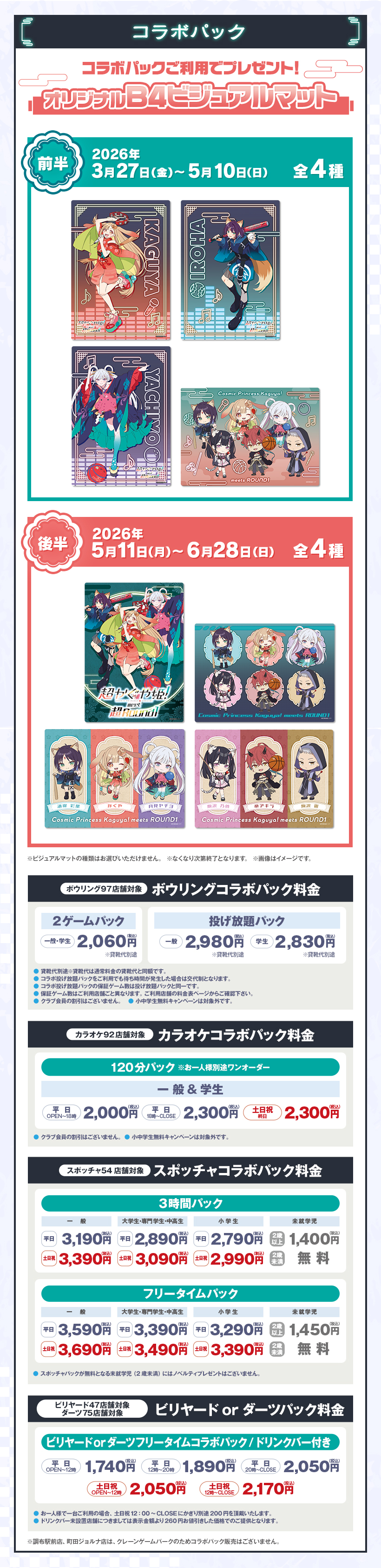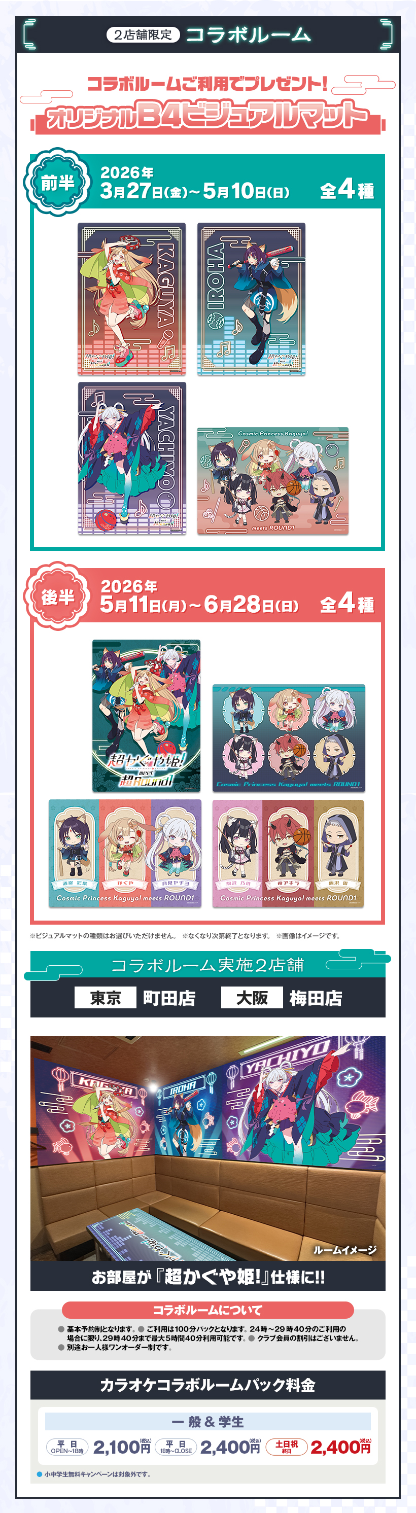 ※原則予約制となります。WEB・アプリからご予約いただけます。 ※クラブ会員等の割引はございません。 ※スペシャルコラボルームは原則予約制となります。ご予約がない時間帯はご利用いただけますが、次のご予約利用の方の時間までとなります。