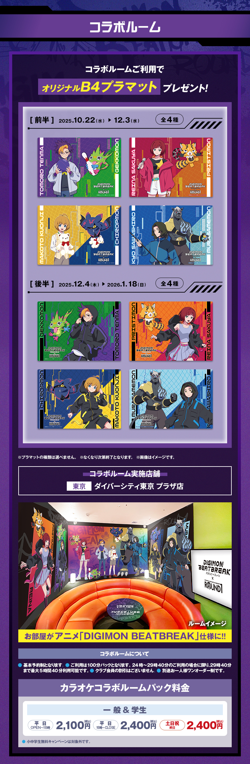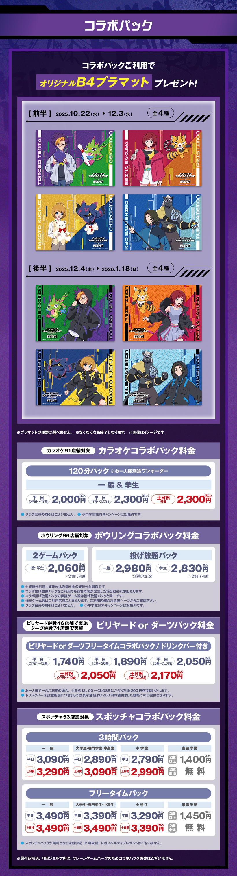 ※原則予約制となります。WEB・アプリからご予約いただけます。 ※クラブ会員等の割引はございません。 ※スペシャルコラボルームは原則予約制となります。ご予約がない時間帯はご利用いただけますが、次のご予約利用の方の時間までとなります。