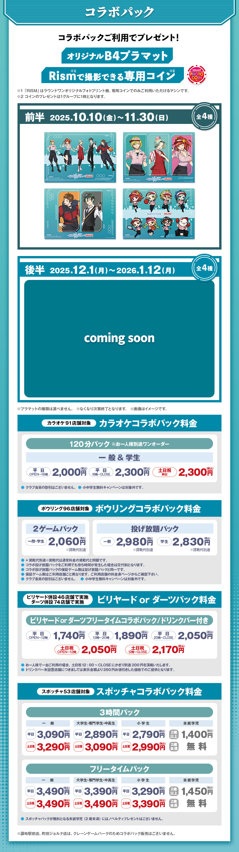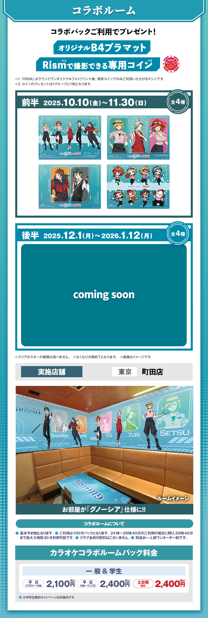 ※原則予約制となります。WEB・アプリからご予約いただけます。 ※クラブ会員等の割引はございません。 ※スペシャルコラボルームは原則予約制となります。ご予約がない時間帯はご利用いただけますが、次のご予約利用の方の時間までとなります。