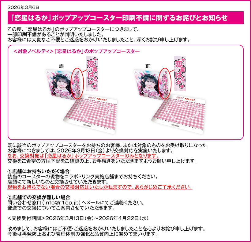 ※各グッズ、ノベルティ及び、ルーム予約においての、転売目的、営利目的の予約、ご購入は固くお断りいたします。