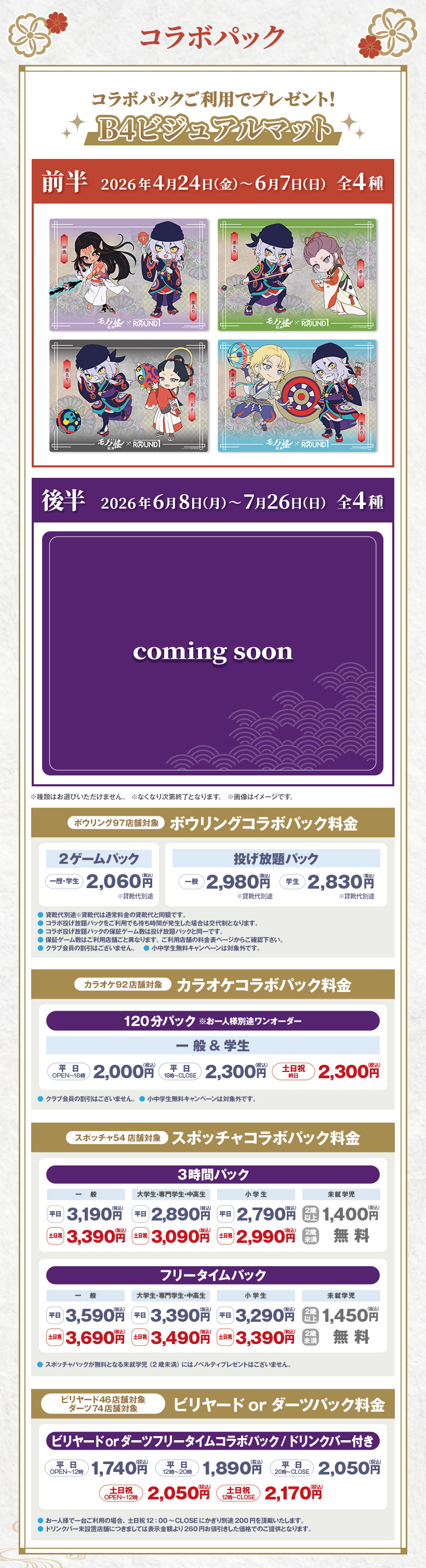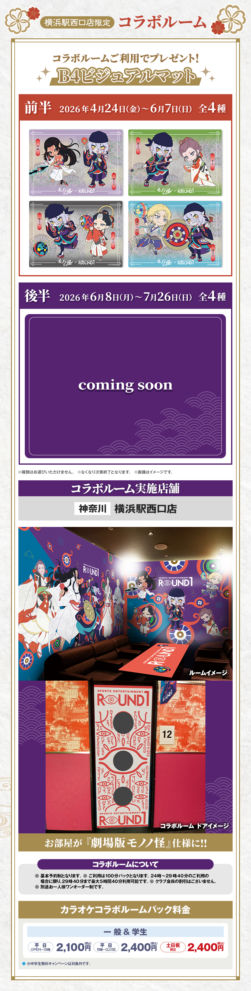 ※原則予約制となります。WEB・アプリからご予約いただけます。 ※クラブ会員等の割引はございません。 ※スペシャルコラボルームは原則予約制となります。ご予約がない時間帯はご利用いただけますが、次のご予約利用の方の時間までとなります。