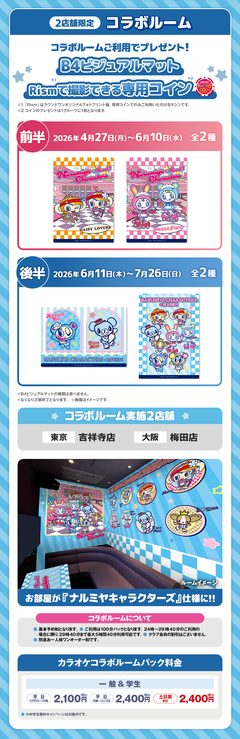 ※原則予約制となります。WEB・アプリからご予約いただけます。 ※クラブ会員等の割引はございません。 ※スペシャルコラボルームは原則予約制となります。ご予約がない時間帯はご利用いただけますが、次のご予約利用の方の時間までとなります。