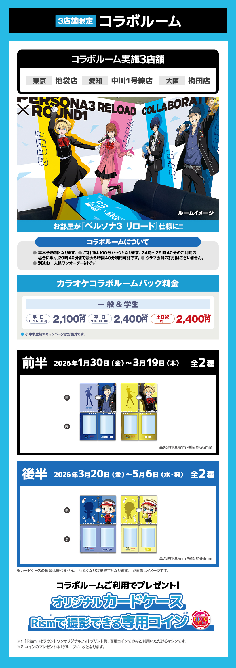 ※原則予約制となります。WEB・アプリからご予約いただけます。 ※クラブ会員等の割引はございません。 ※スペシャルコラボルームは原則予約制となります。ご予約がない時間帯はご利用いただけますが、次のご予約利用の方の時間までとなります。