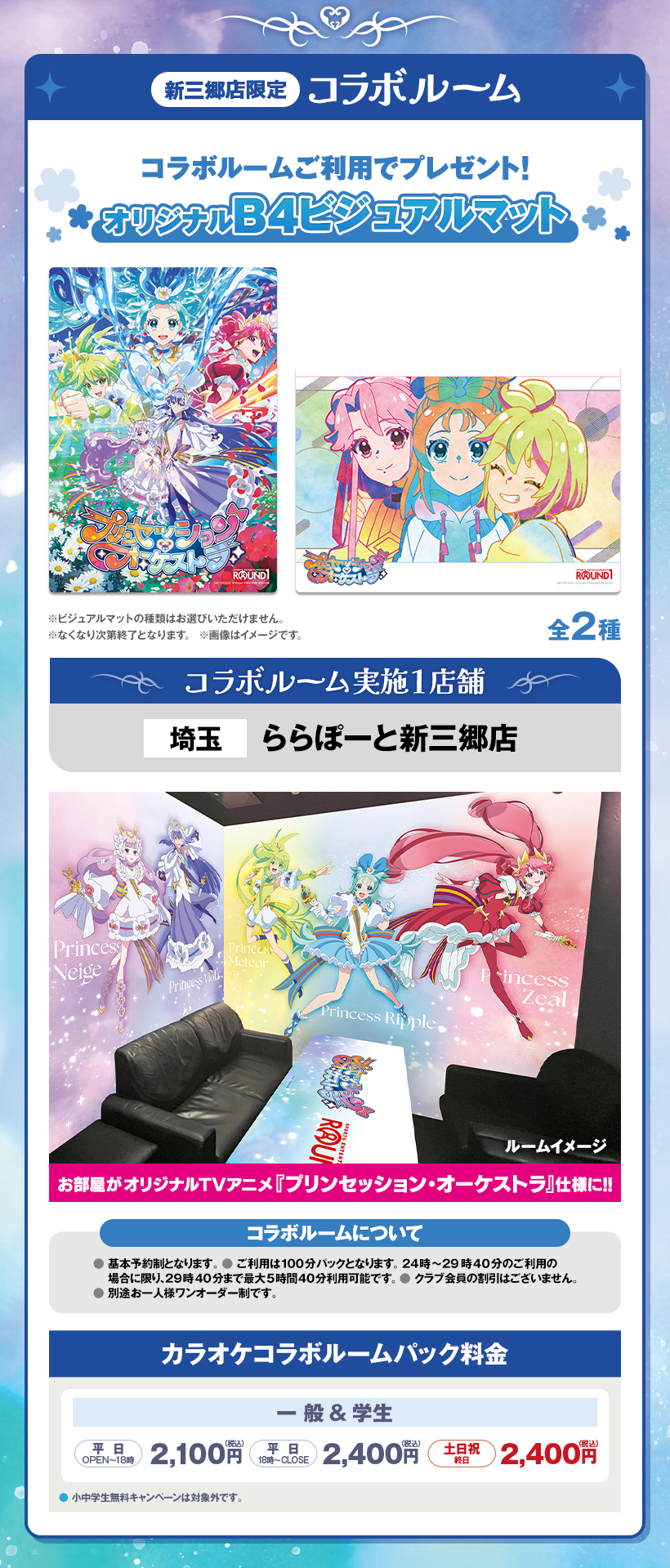 ※原則予約制となります。WEB・アプリからご予約いただけます。 ※クラブ会員等の割引はございません。 ※スペシャルコラボルームは原則予約制となります。ご予約がない時間帯はご利用いただけますが、次のご予約利用の方の時間までとなります。