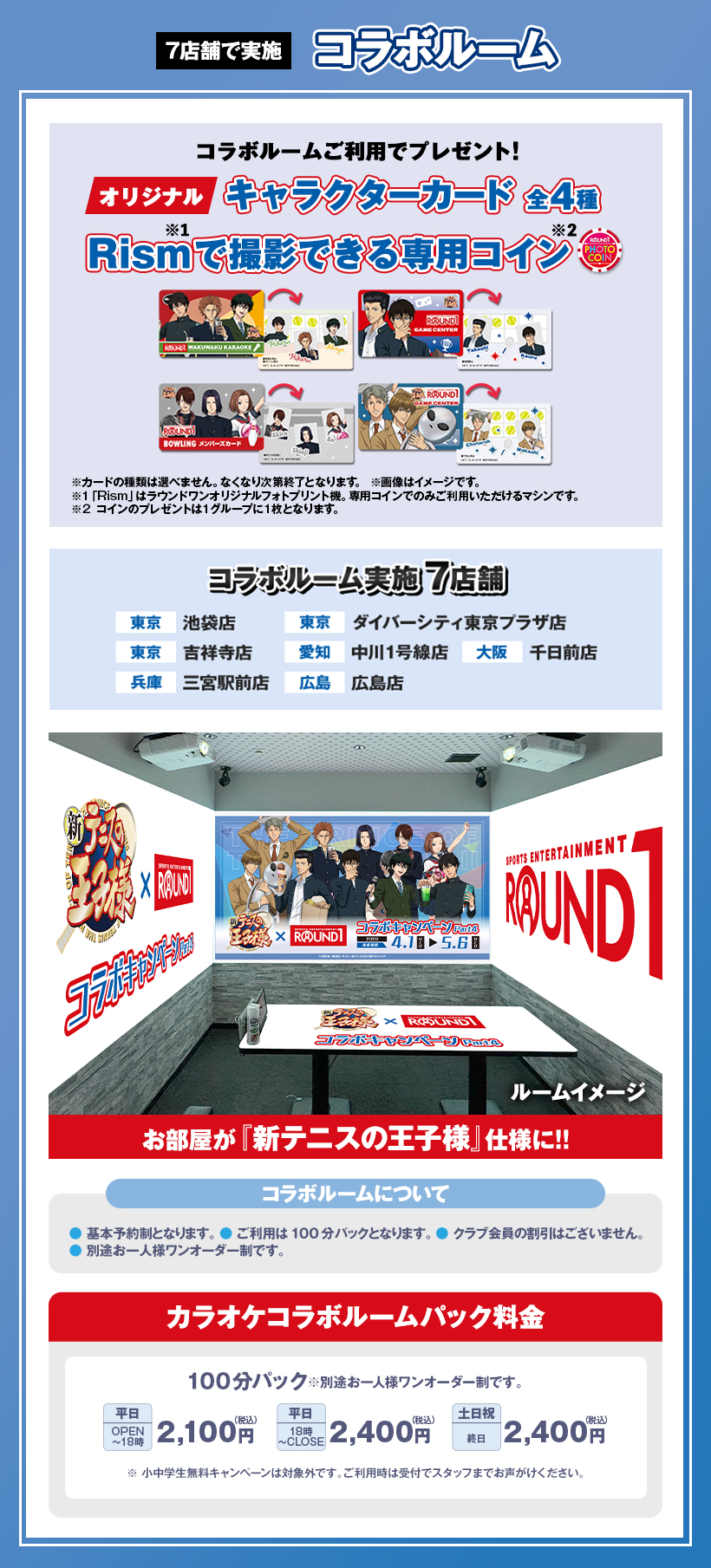 ※原則予約制となります。WEB・アプリからご予約いただけます。 ※学生割引やクラブ会員等の割引はございません。 ※スペシャルコラボルームは原則予約制となります。ご予約がない時間帯はご利用いただけますが、次のご予約利用の方の時間までとなります。