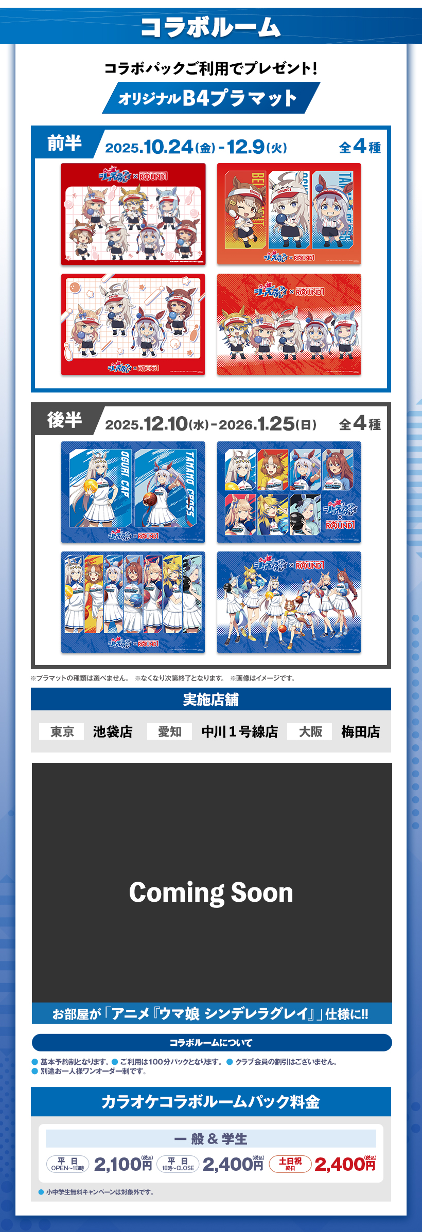 ※原則予約制となります。WEB・アプリからご予約いただけます。 ※クラブ会員等の割引はございません。 ※スペシャルコラボルームは原則予約制となります。ご予約がない時間帯はご利用いただけますが、次のご予約利用の方の時間までとなります。