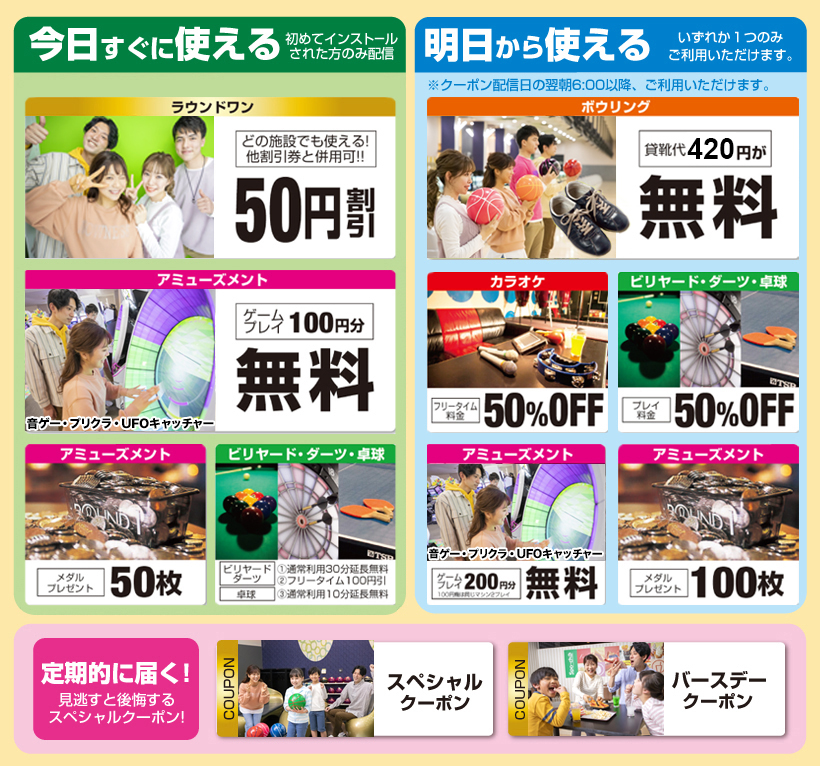 【アプリ特典】お得なクーポンたくさんプレゼント!!