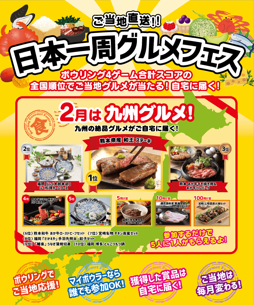 ラウンドワン全店舗で開催する「日本一周グルメフェス」のスコアをランキングし、表彰致します。