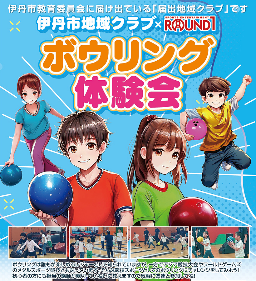 伊丹市教育委員会に届け出ている「届出地域クラブ」です。伊丹市地域クラブ × ROUND1 ボウリング体験会