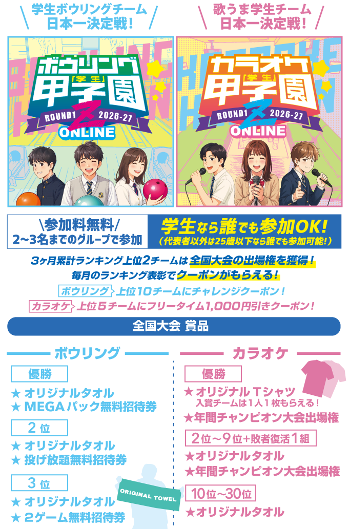 2026-2027年度のボウリング・カラオケ学生甲子園は、4月1日10:00~スタート!