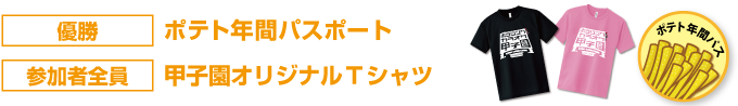 ※Tシャツ、ポテト年間パスポートはイメージです。※優勝チームは「ポテト年間パスポート」「オリジナルTシャツ」の両方を進呈いたします。