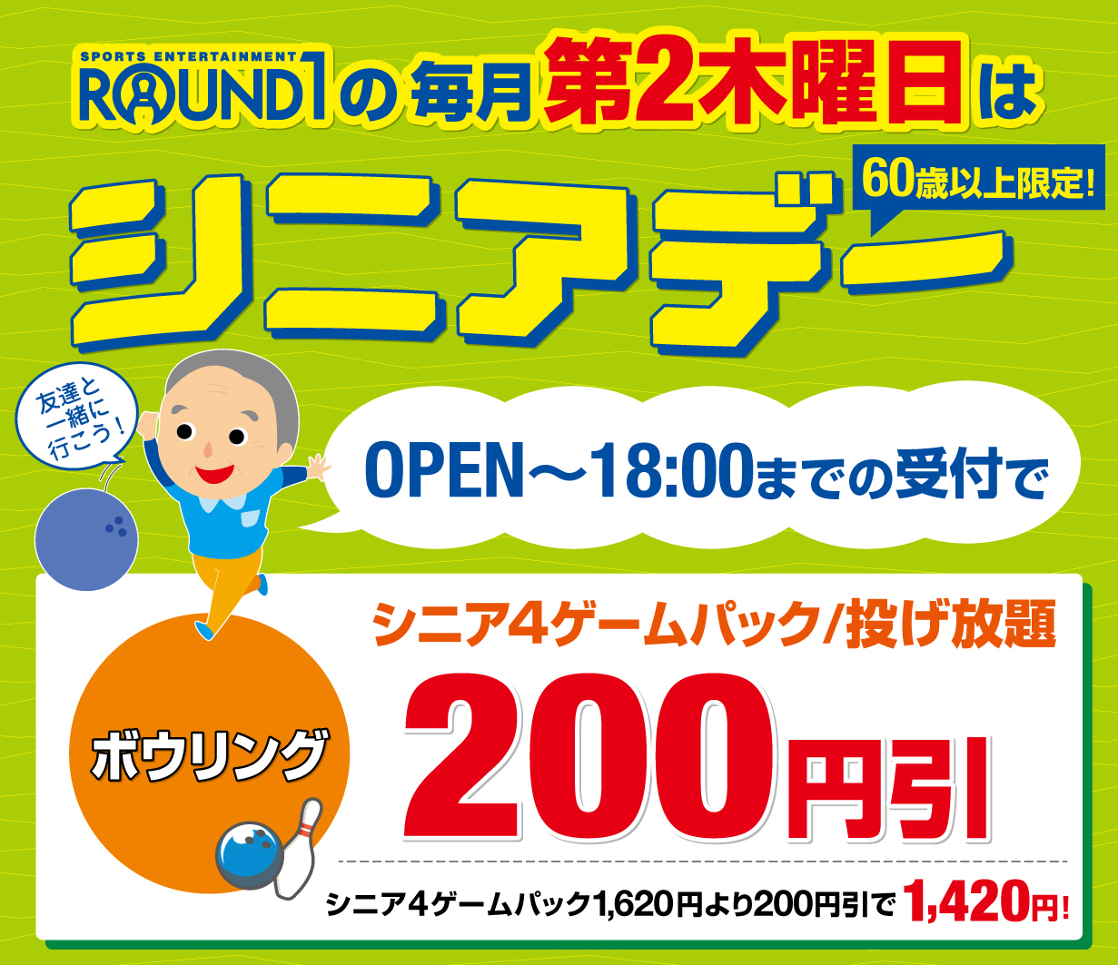 60歳以上の方限定! 毎月第2木曜日はシニアデー